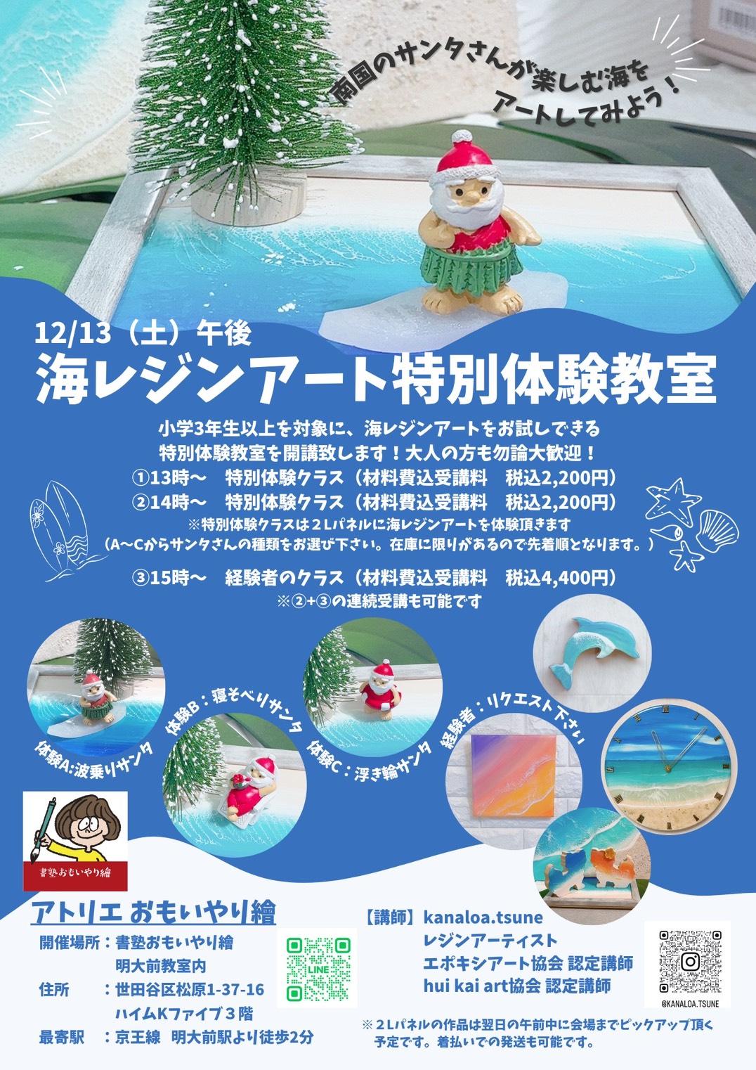 海レジンアート特別体験教室開催のお知らせ|南国サンタさんと一緒に作る冬のアート♪